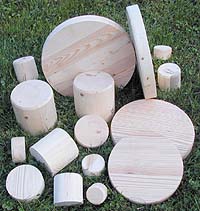 If you have any questions, call 608-759-5514 or send e-mail to: info@MidwestWoodSpecialties.com. If you call and I am out of the office, please leave a message. Standard plugs 1 1/2" thick; in diameters 1 3/4" to 16", all with beveled edge, for easy insertion in your tubes. We use weatherproof laminations. Solid plugs following sizes 2' to 12", in several thicknesses. **DR#11 --- 2" pipe used for consumer fireworks |